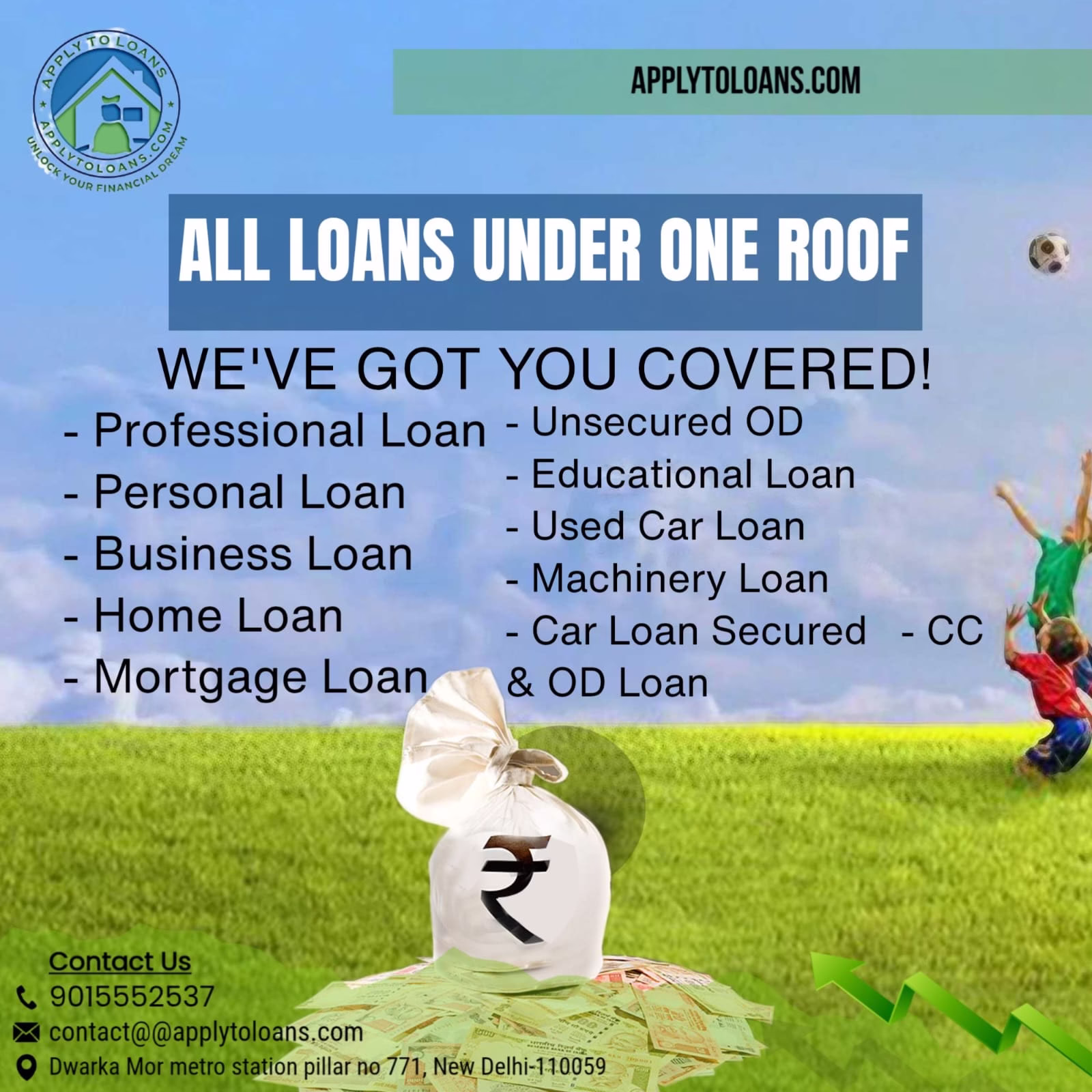 APPLYTOLOANS.COM is a trusted loan services provider in India, it offers all loans under one roof India, making borrowing easier, faster, and more transparent. Whether you need a Personal loan, Home loan, Business loan, Loan against property, Overdraft facility, Machinery loan, Gold loan, or even a used car loan, APPLYTOLOANS.COM brings it all together in a one-stop loan solution India.